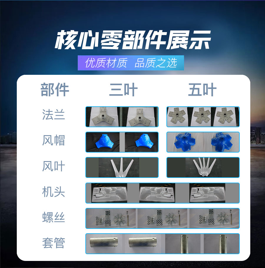 1、風(fēng)葉采用高強度尼龍復(fù)合材料,強度高,韌性好,防紫外線,防腐蝕,抗大風(fēng)。