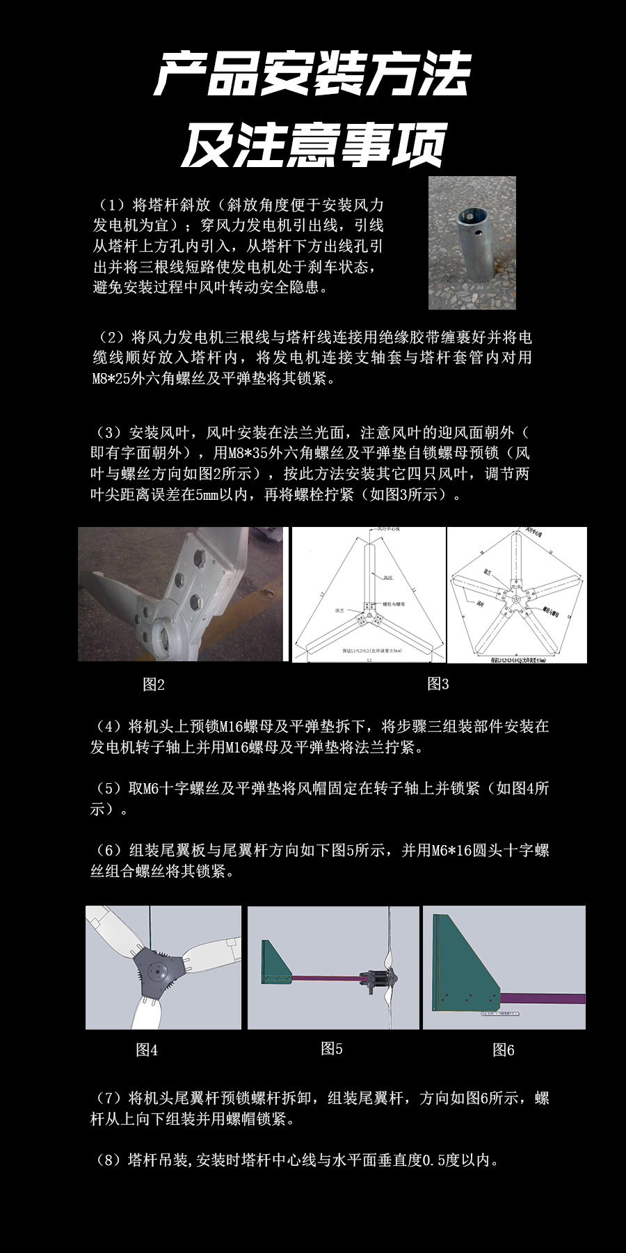 8、采用自動(dòng)對(duì)風(fēng)裝置,使風(fēng)力發(fā)電機(jī)自動(dòng)調(diào)整對(duì)準(zhǔn)迎風(fēng)方向,兼顧調(diào)向靈敏性和穩(wěn)定性,風(fēng)力較大情況下發(fā)電機(jī)尾翼斜置限速保護(hù)風(fēng)機(jī)不受損。
