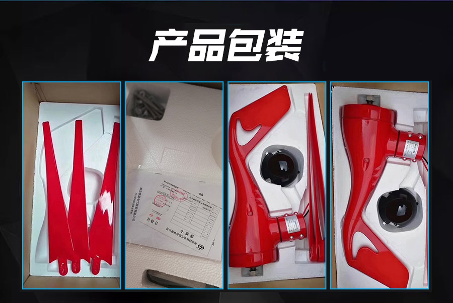 3、風(fēng)葉采用高強度復(fù)合材料,強度高,韌性好,防紫外線,防腐蝕,抗大風(fēng),具有良好的氣動性能。